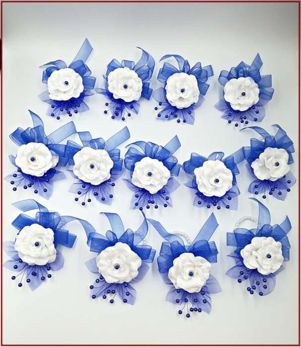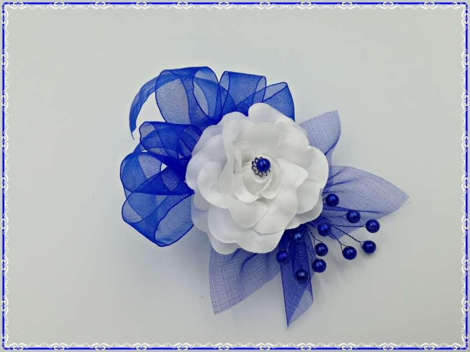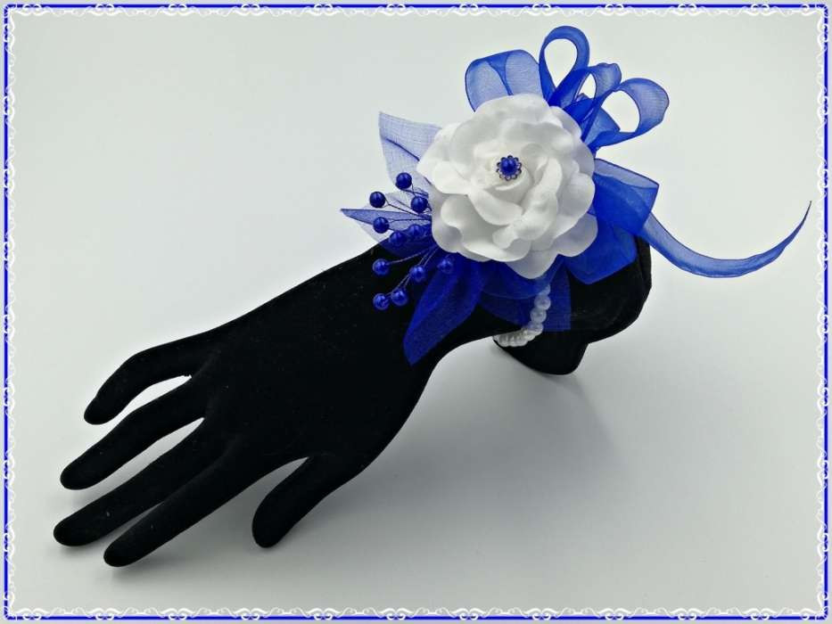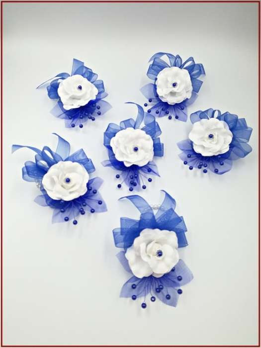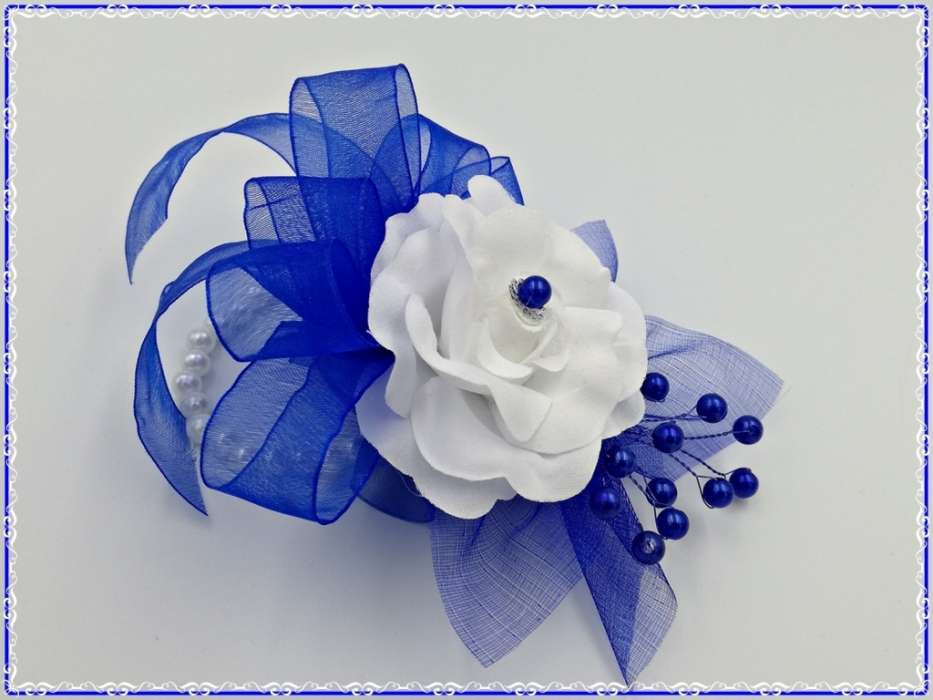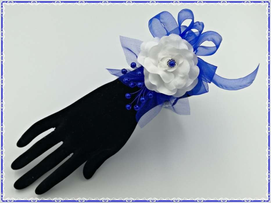 Királykék-fehér rózsás csuklódísz