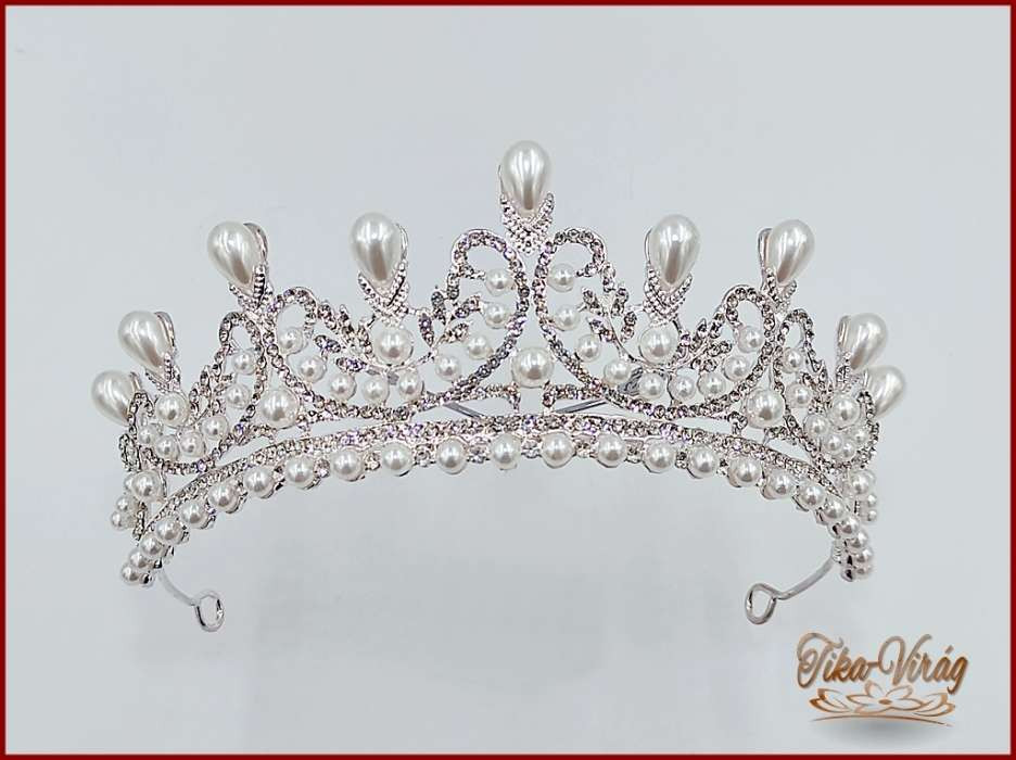 Korona BENAL-22809. Gyöngyökkel díszített virágmintás Korona Mérete: magassága: 6,5 cm díszítése : 25 cm