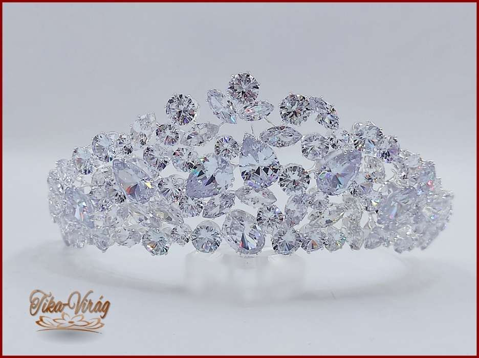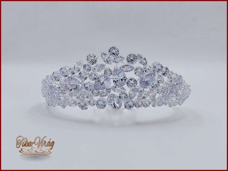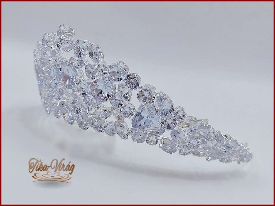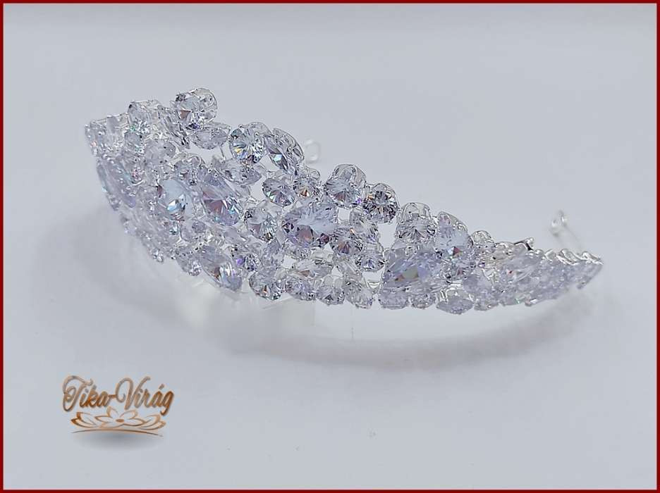 Korona Cirkónia köves CALNC-21704. Csodálatos csillogású, nagy cirkónium köves fél-korona. Mérete: -magassága: 6,5cm -díszítés hossza: 30cm