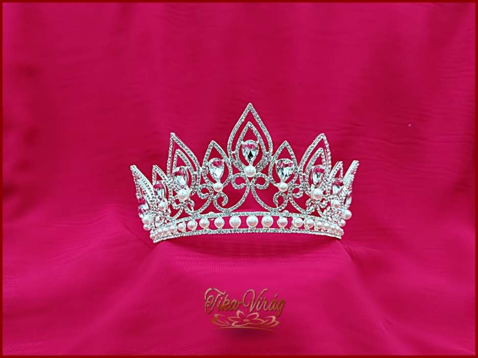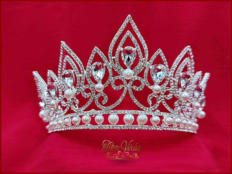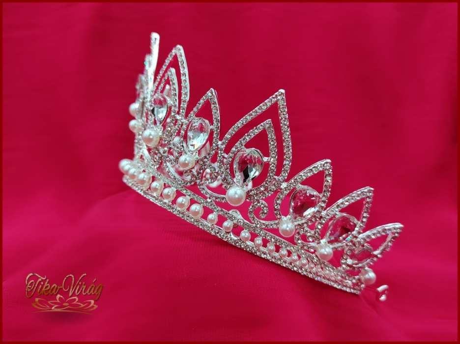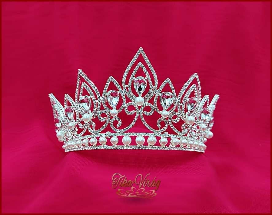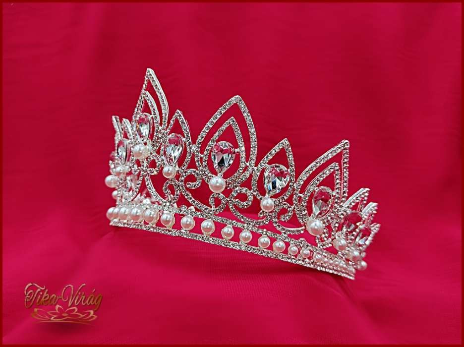 Korona fehér gyöngy díszítéssel CALNC-19901.E. Mérete: -magassága: 7,5cm -díszítés hossza: 32cm