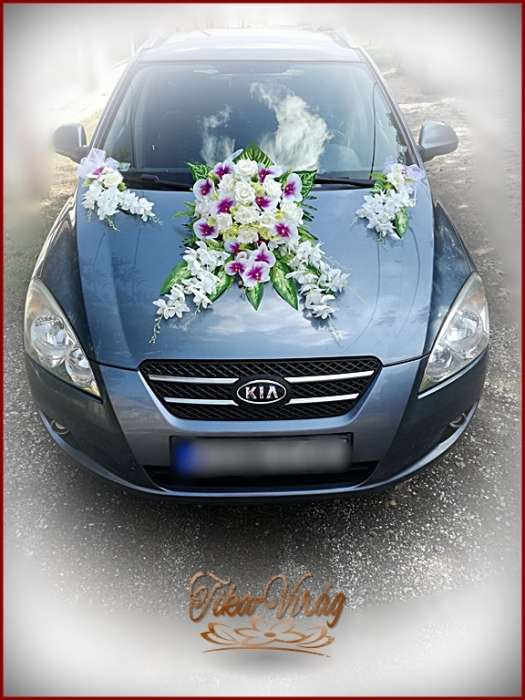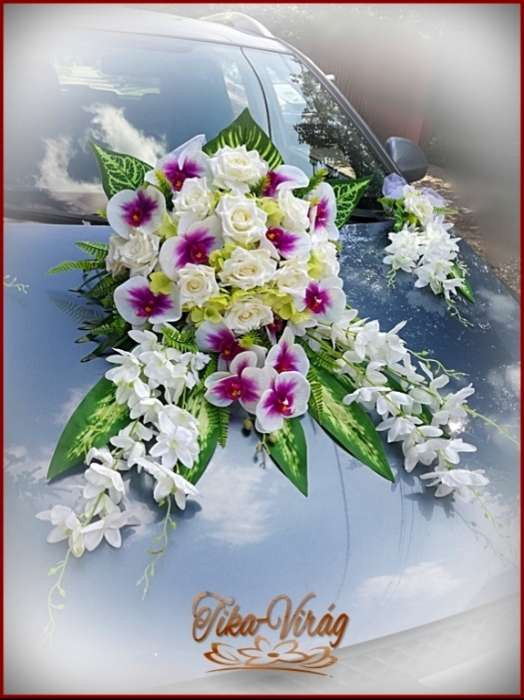 Lila-Fehér Orchideás-Rózsás, zöld Hortenziás autódísz 134705.