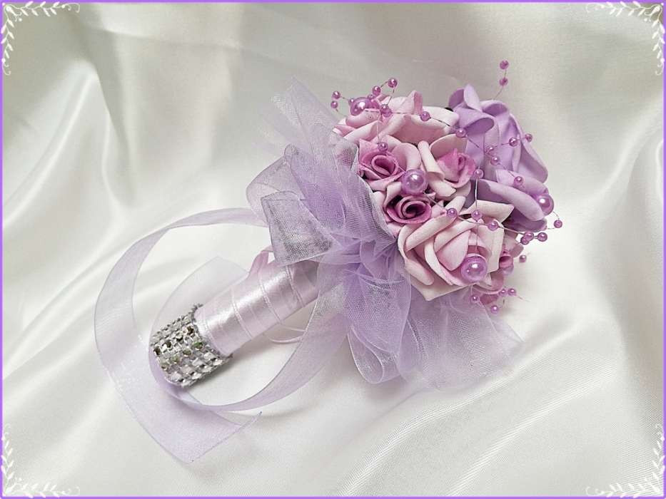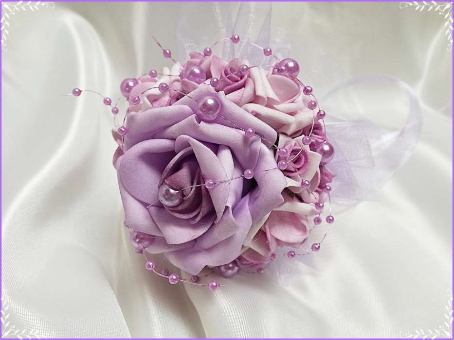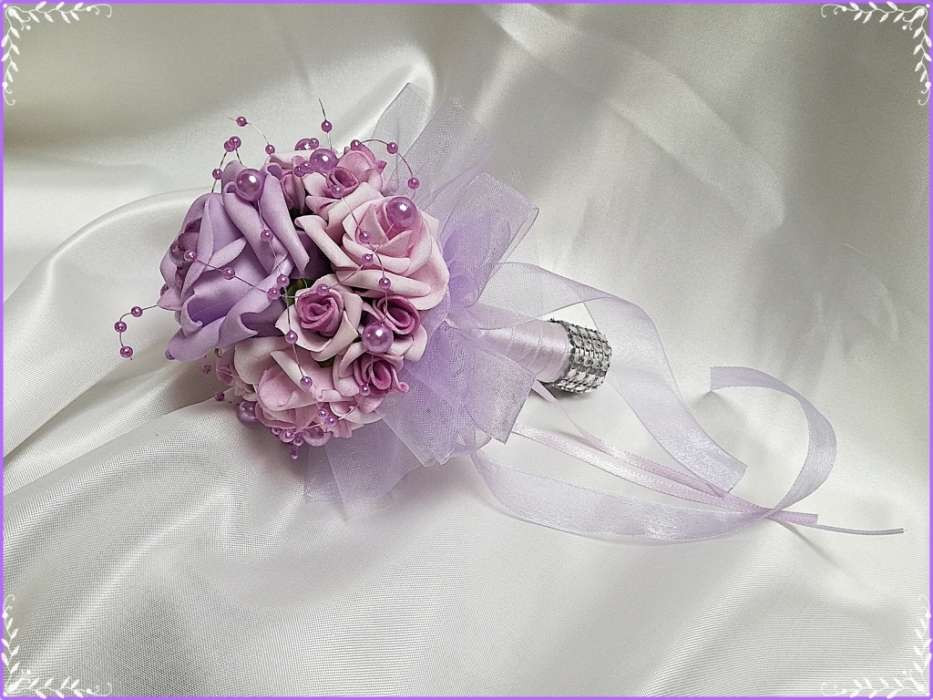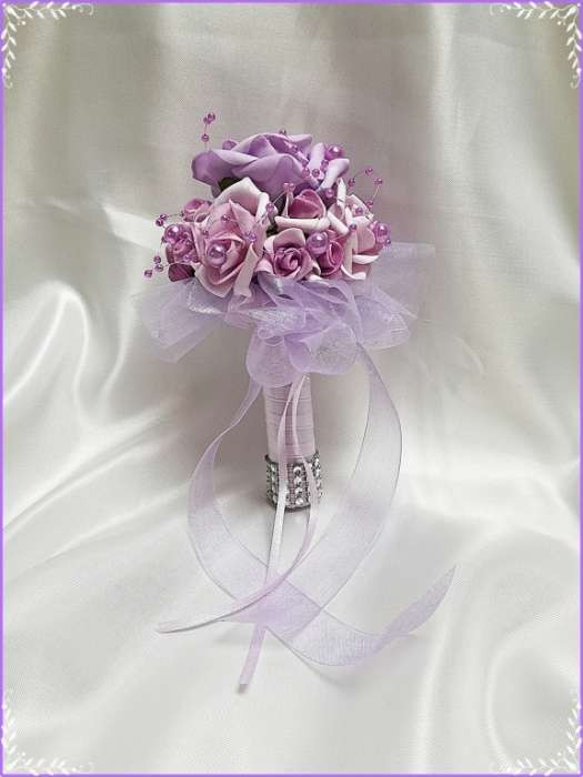 Lila dobó, koszorúslány vagy köszöntő örök-csokor 133741. Csokor hossza: 16cm átmérője: 12cm fej magassága: 8cm Más szín-összeállításban is kérhető!