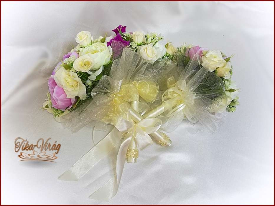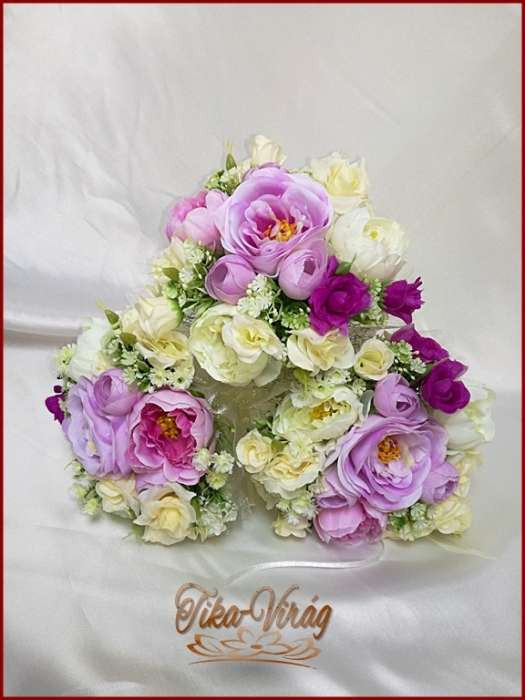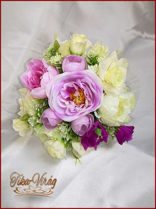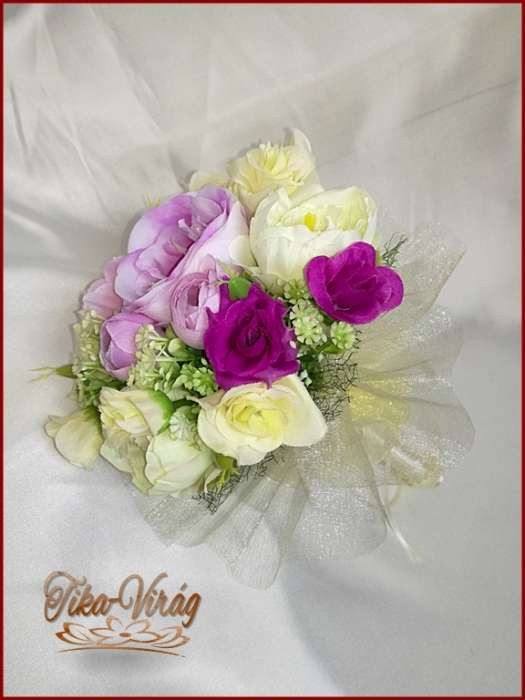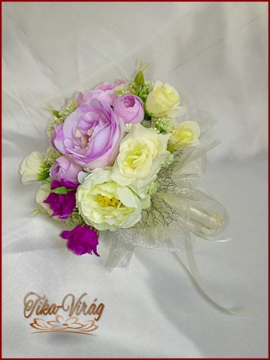 Lila-ekrü koszorú-, dobó-, örök-csokor 161925_1. Mérete: 20cmx17cm Más színben is kérhető! Ajánlom: dobó, köszöntő, koszorúslány örök-csokornak.