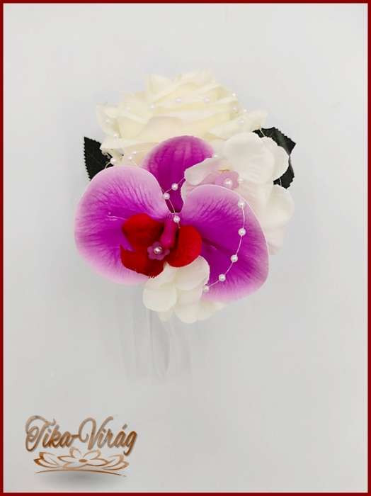 Lila orchideás - fehér rózsás kitűző, bokréta