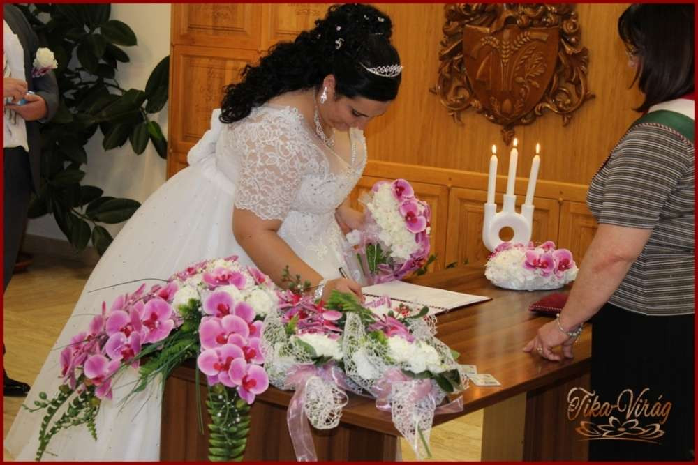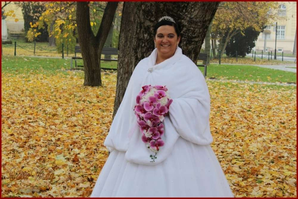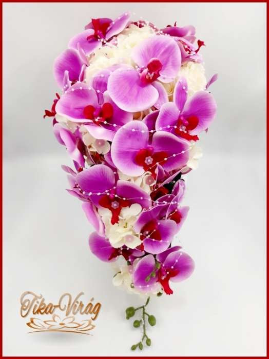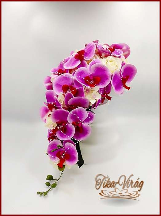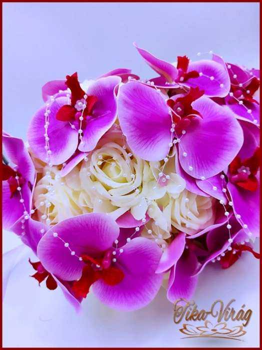 Lila orchideás - fehér rózsás örök-csokor 191546. Mérete: 60cm hosszú , 32 cm széles Más színben is kérhető! Prémium minőségű virágokból készült örök-csokor!