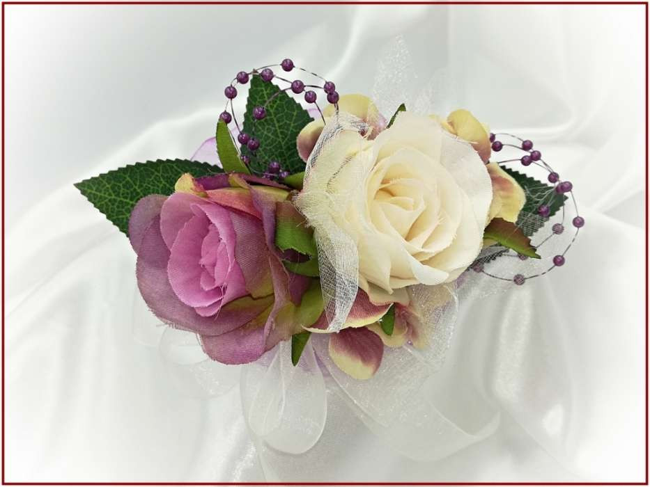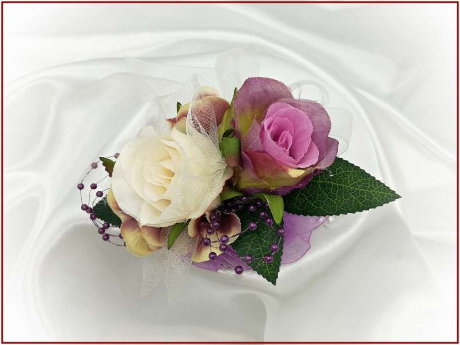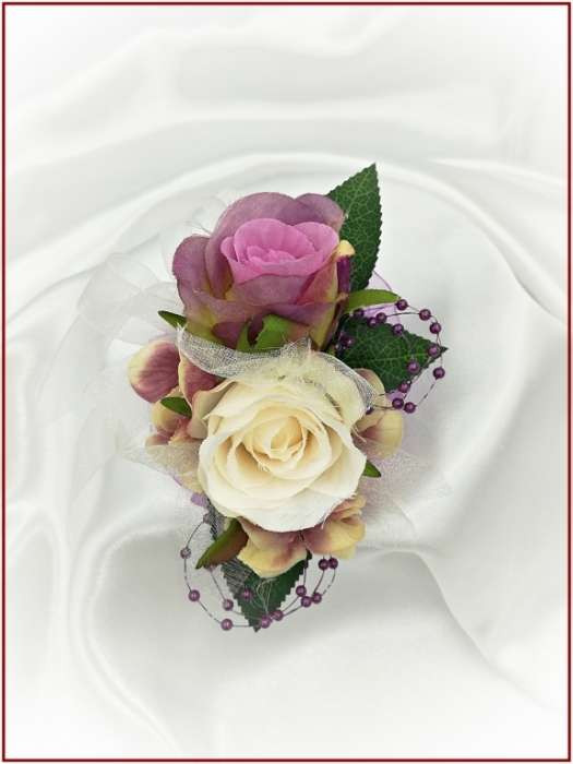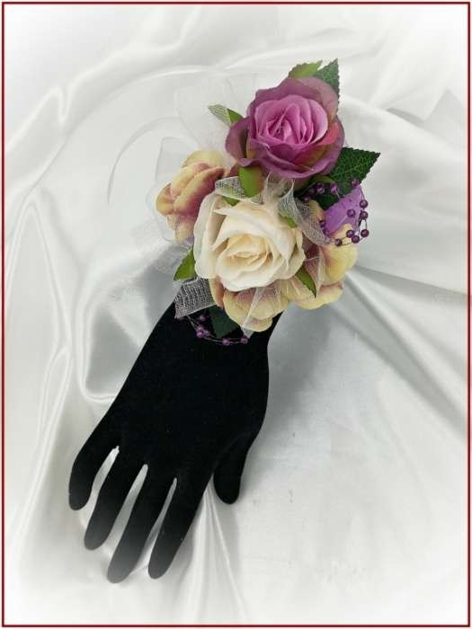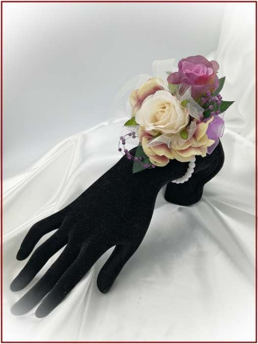 Lila-pasztell csuklódísz 2 virágos