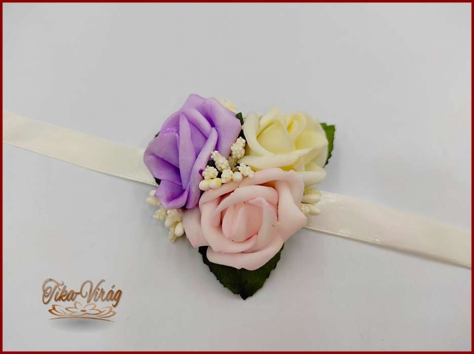 Lila-rózsaszín-ekrü rózsás csuklódísz 161601.