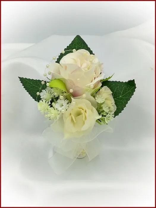 Mályva-ekrü 1 virágos kitűző, bokréta