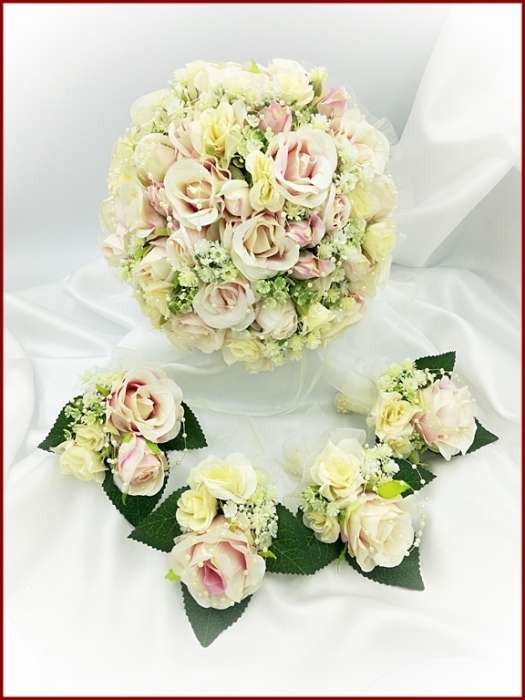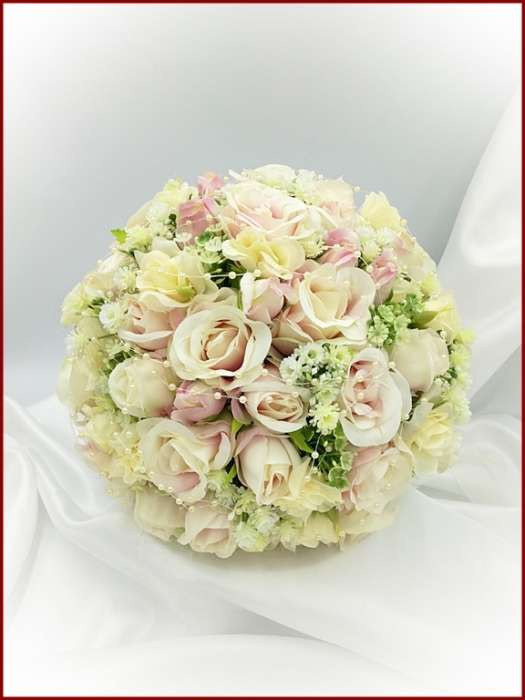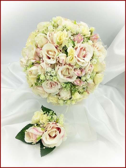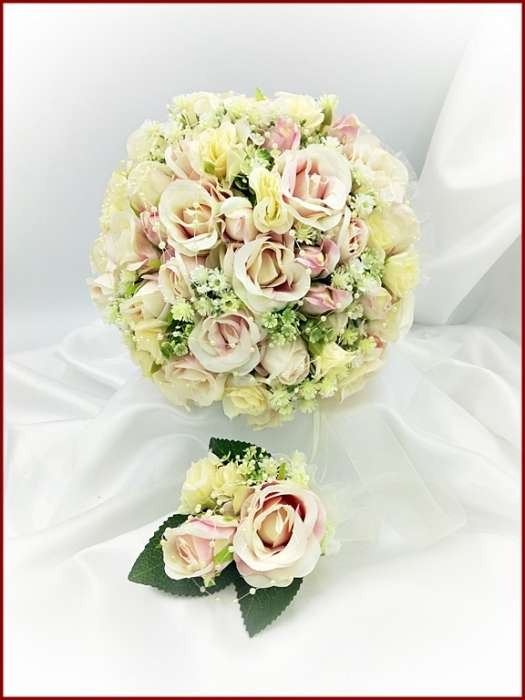Mályva-ekrü 34 szálas örök-csokor kitűzővel 225319.