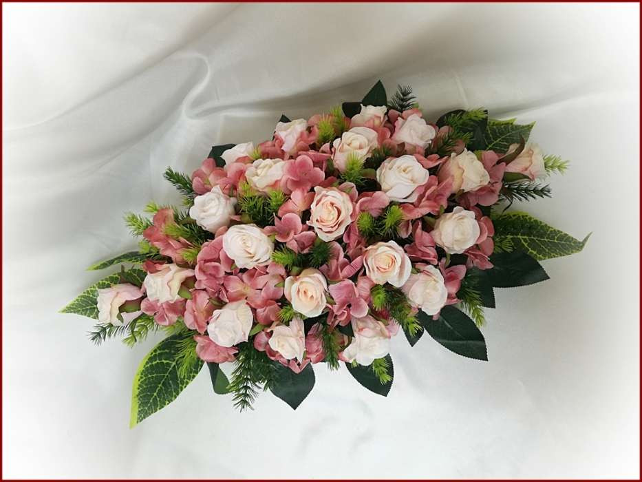 Mályvás-pasztell asztaldísz 125631.1. 21 szál rózsából Asztaldísz méretei: hossza: 50cm szélessége: 24cm magassága: 20cm Más színben is kérhető és szí-díszítésben is kapható! Mond el milyenre szeretnéd!