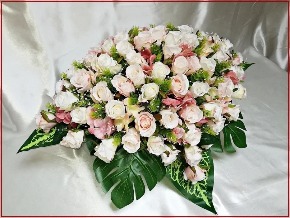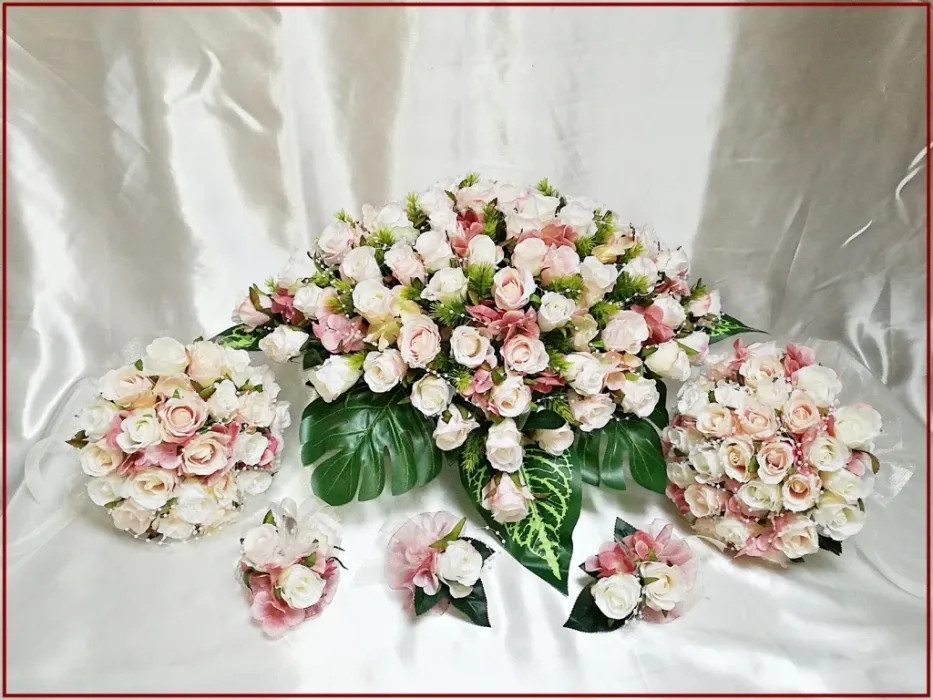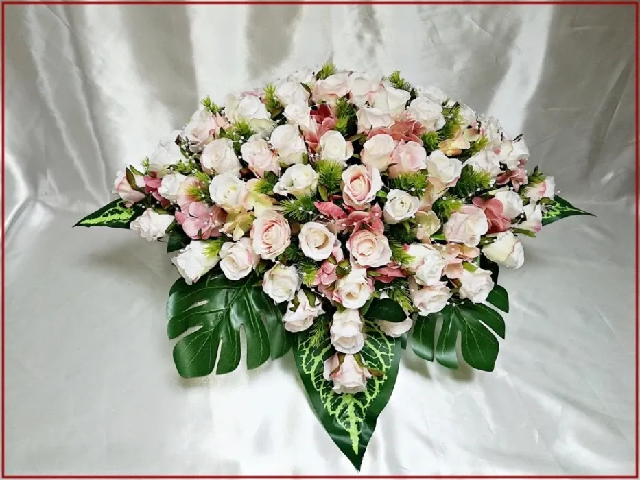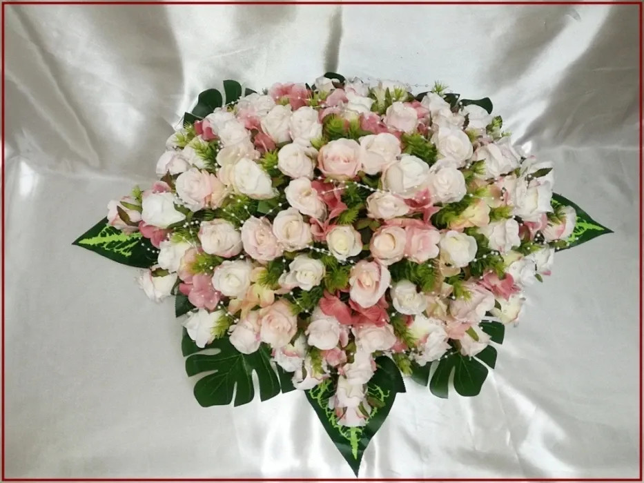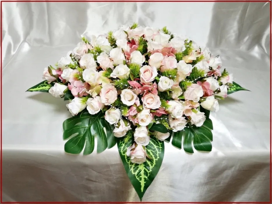 Mályvás-pasztell asztaldísz 132433. 75 szál rózsából! Asztaldísz méretei: hossza: 65cm szélessége: 45cm magassága: 20cm lelógó rész: 20cm Más színben is kérhető és szí-díszítésben is kapható! Mond el milyenre szeretnéd!