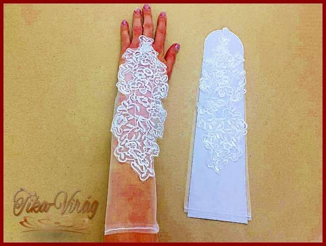 Menyasszonyi csipke kesztyű, hosszú ujjas változat