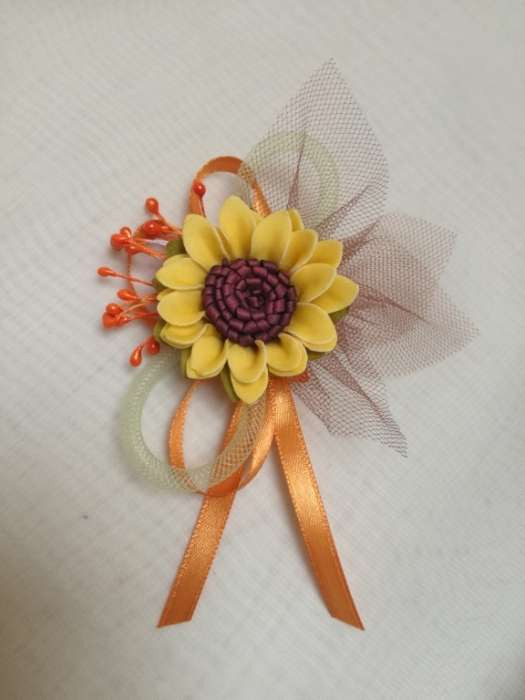 Napraforgós bokréta, kitűző narancsos szalaggal