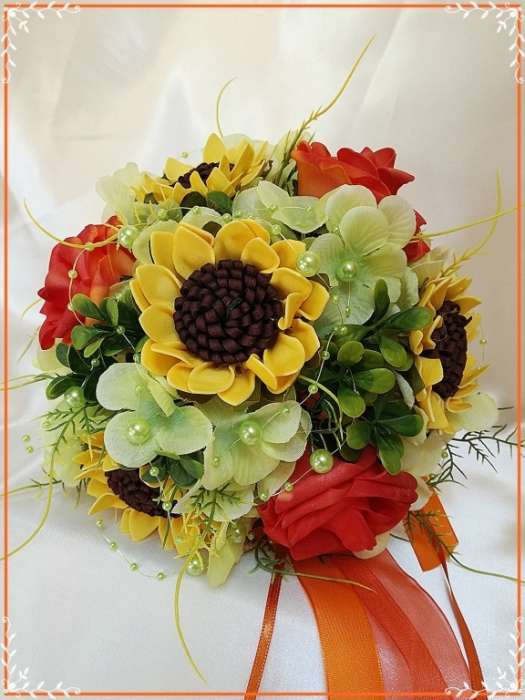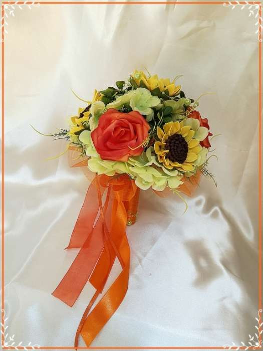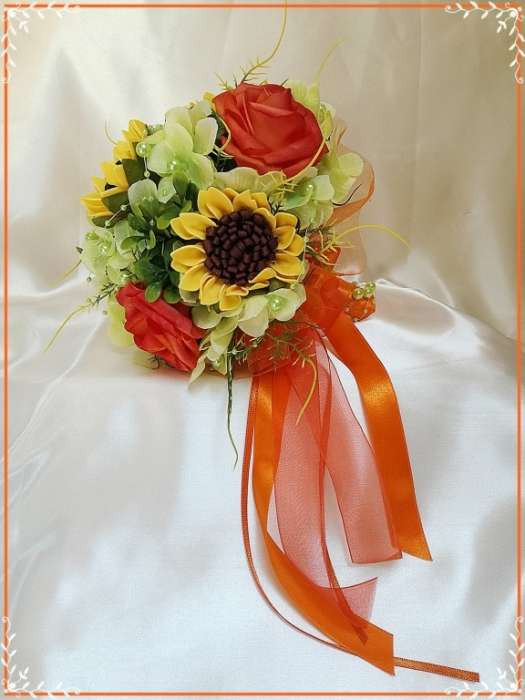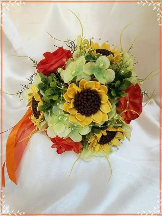 Napraforgós-rózsás-hortenziás örök-csokor 7 virágos 134935.
