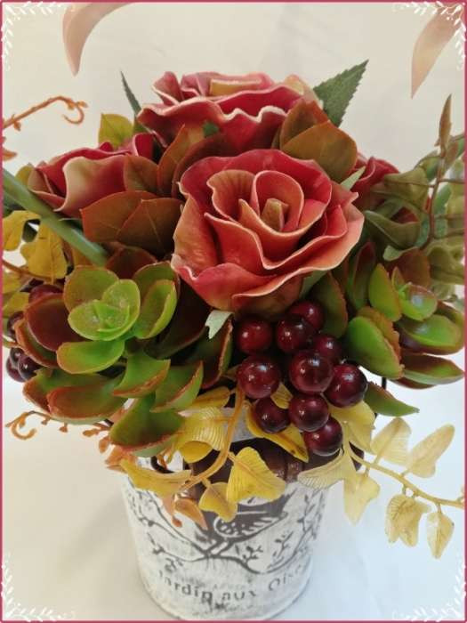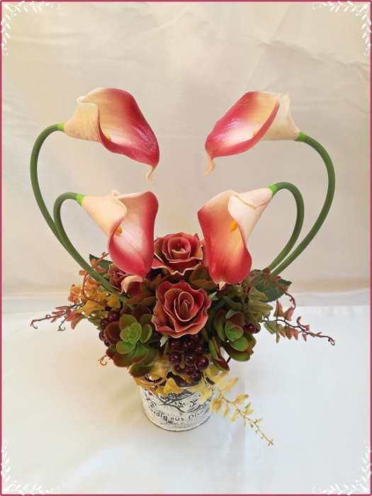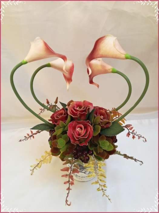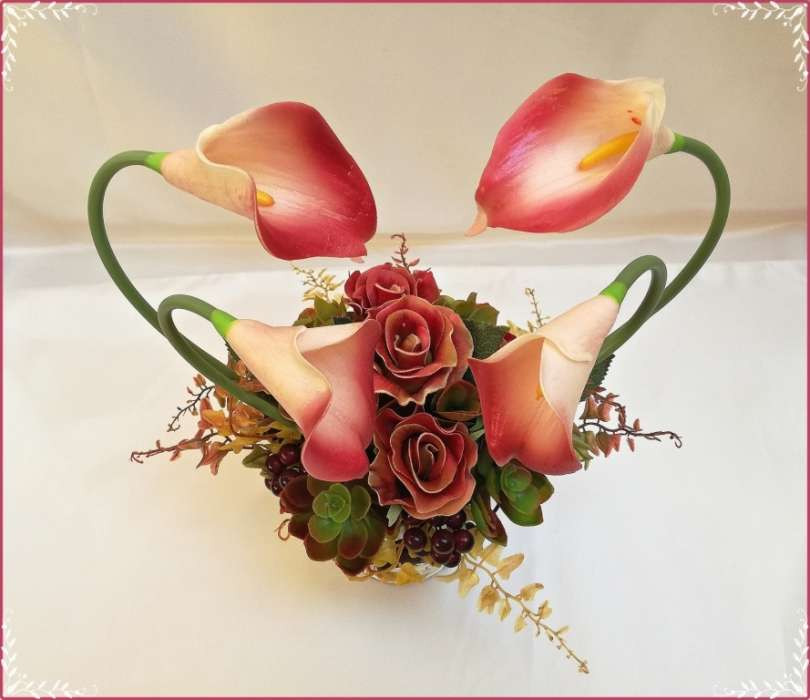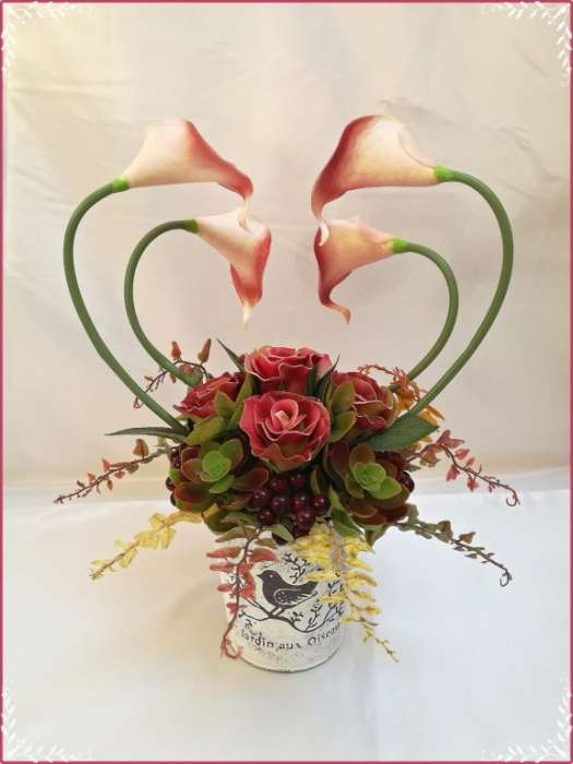 Különleges hab-gumi anyagból, prémium minőségű virágokból készült örök-ikebana.