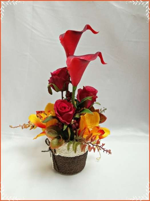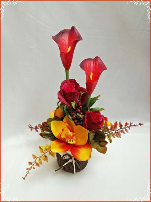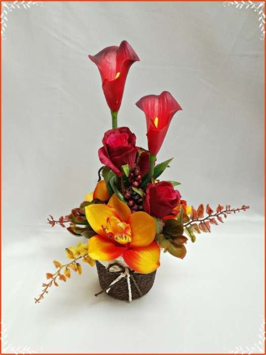 Őszi-árnyalatú ikebana, asztaldísz összeállítás 151801.