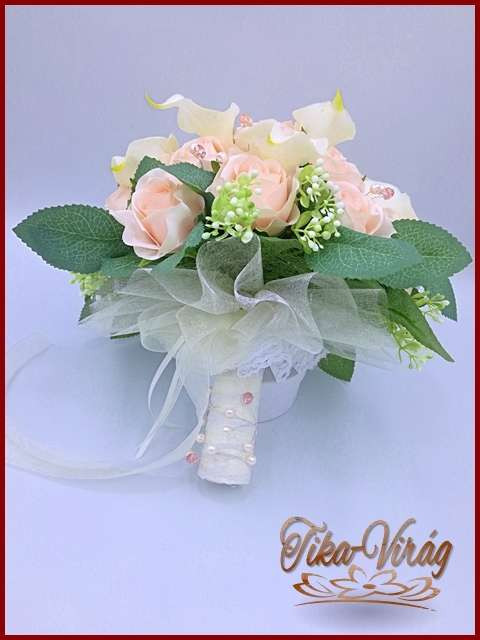 Prémium minőségű virágokból készült örök-csokor 25 szál rózsából és 12 szál kálával.