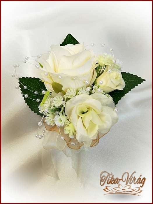Pezsgő-arany-ekrü díszítésű 1 virágos kitűző, bokréta