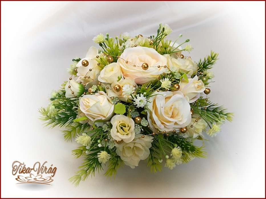 Pezsgő-arany-ekrü díszítésű asztaldísz 175759. Asztaldísz méretei: szélessége: 25 cm magassága: 14 cm Más színben, szín-díszítéssel is kérhető!
