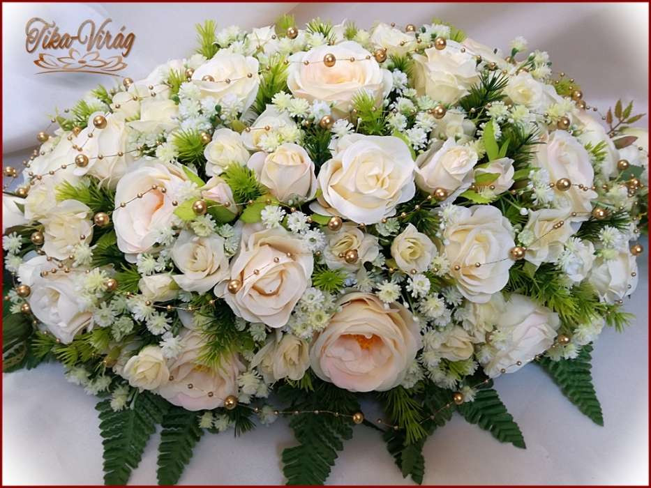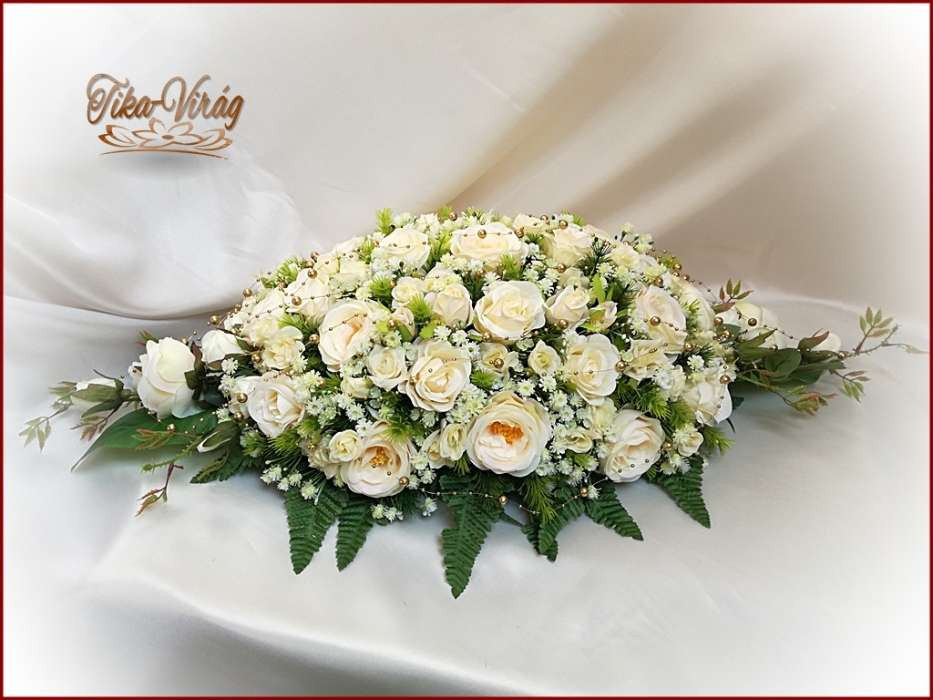 Pezsgő-arany-ekrü díszítésű asztaldísz 180117. Asztaldísz méretei: hossza: 75cm szélessége: 35cm magassága: 25cm Más színben is kérhető!