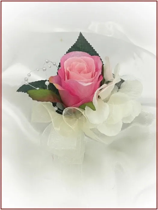 Pink-barack-pasztell 1 virágos kitűző, bokréta