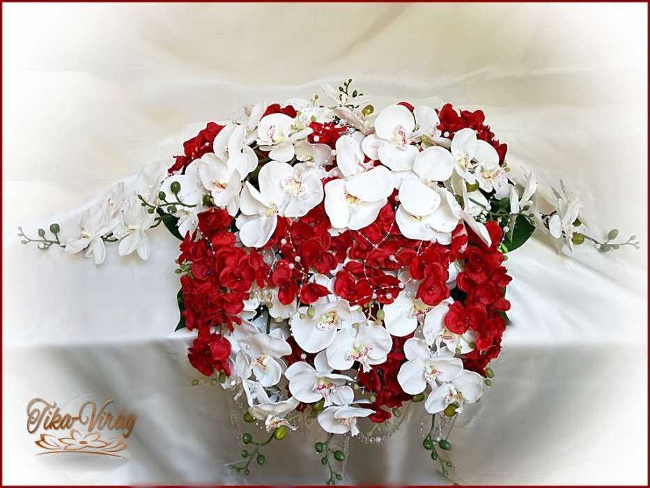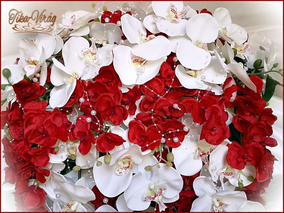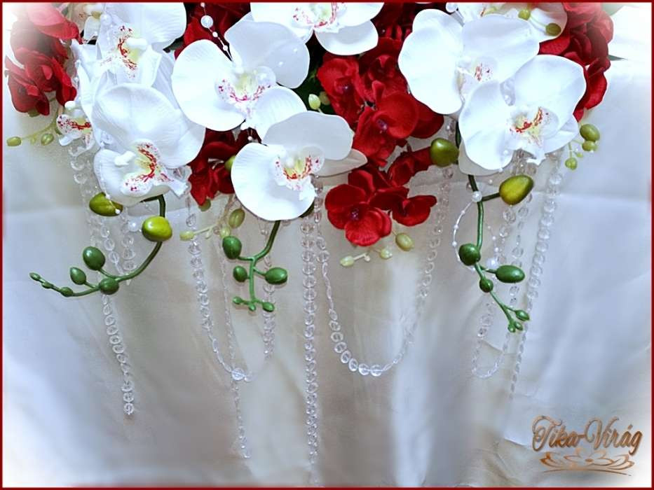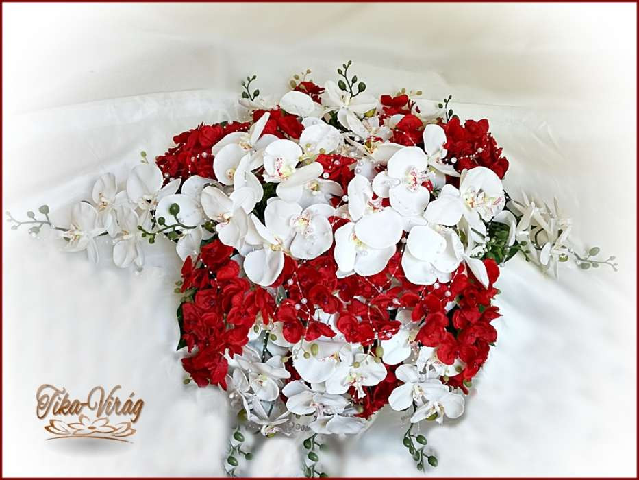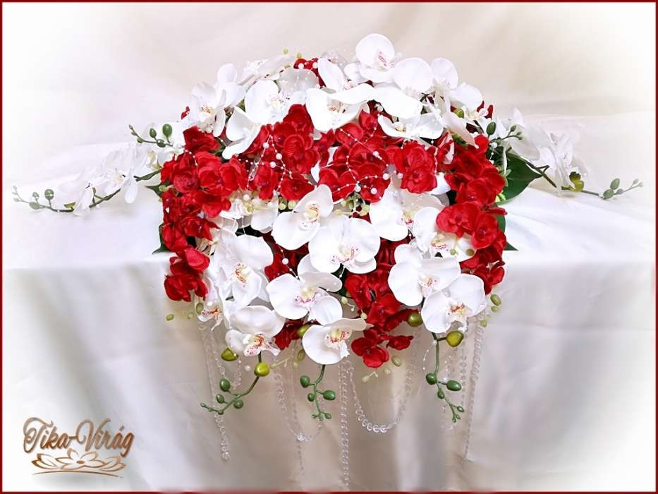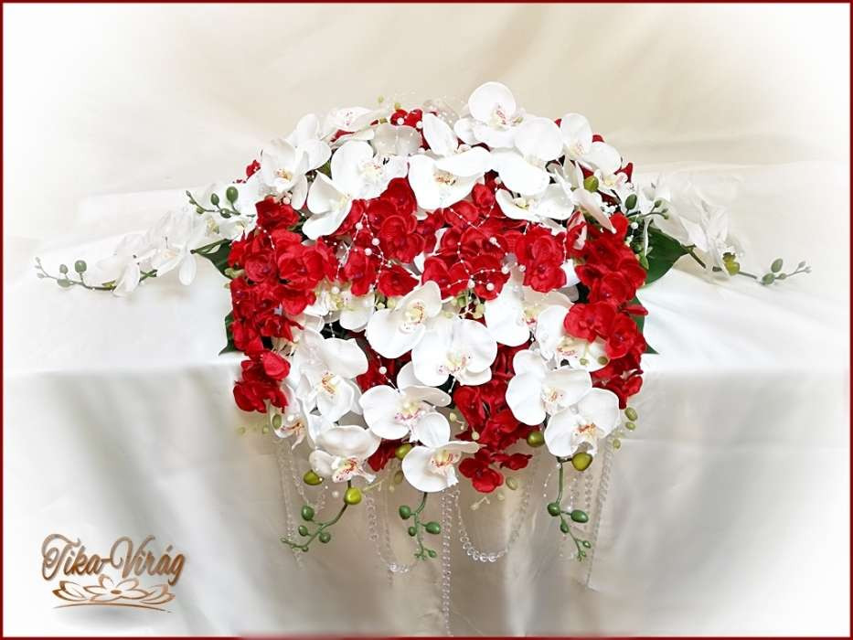 Piros-fehér orchideás örök-főasztaldísz 122343.