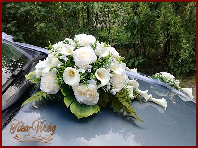 Puder rózsa-fehér kálákkal autódísz 182200.