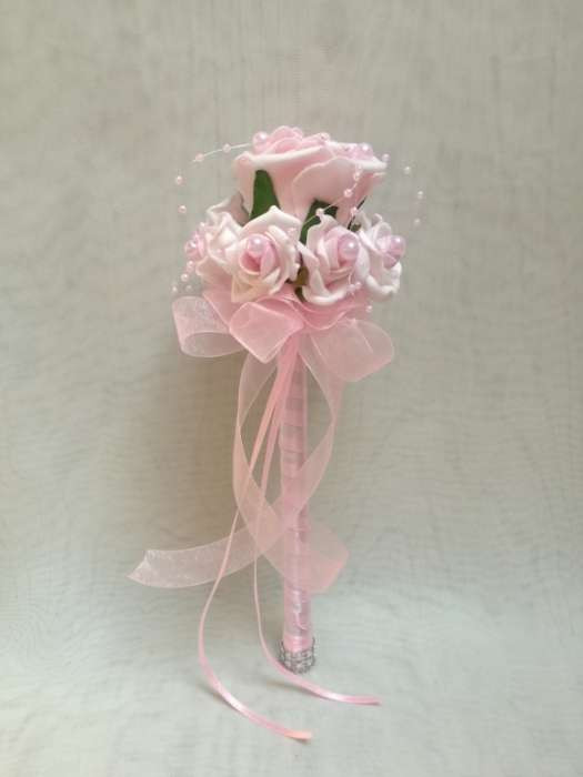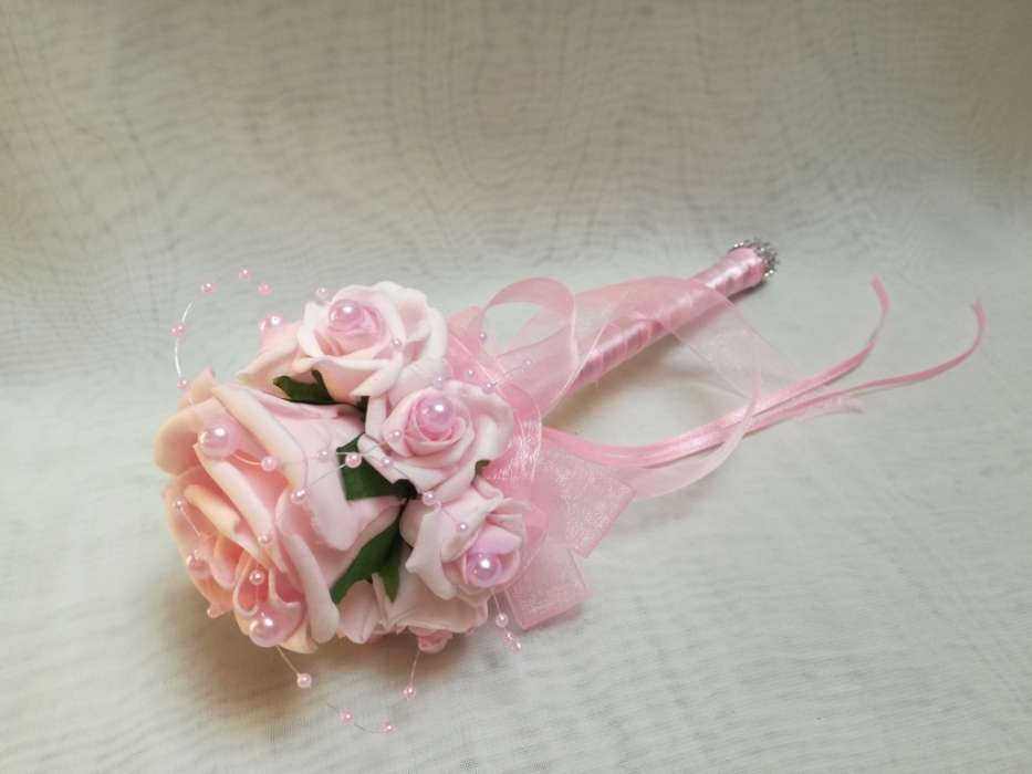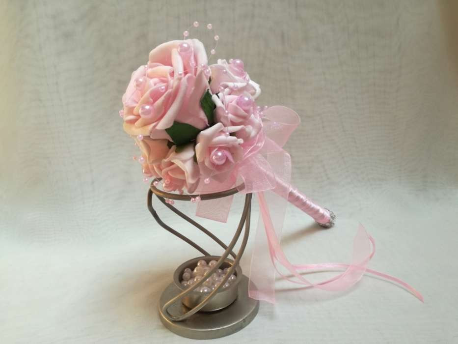 RÓZSASZÍN DOBÓ, KOSZORÚSLÁNY VAGY KÖSZÖNTŐ ÖRÖK-CSOKOR 153200. Csokor hossza: 25cm átmérője: 12cm fej magassága: 8cm Más szín-összeállításban is kérhető!