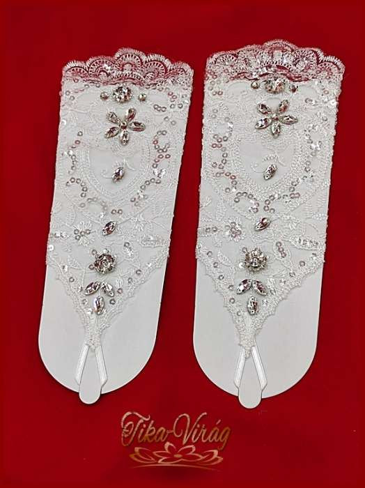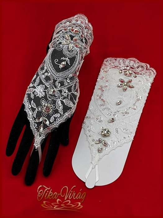 Rövid ujjas menyasszonyi kesztyű csipkéből