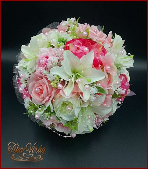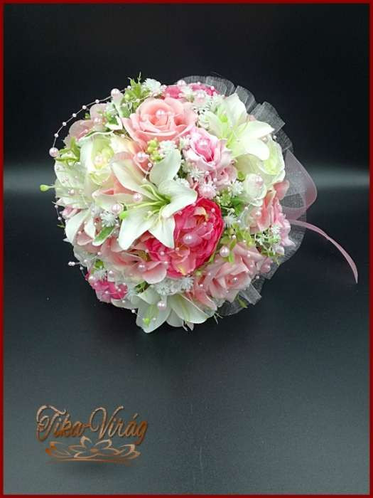 Rózsaszín rózsás-fehér liliomos örök csokor 123335. Átmérője: 24cm Magassága: 25cm Más színdíszítéssel is kérhető! Mond el milyenre szeretnéd! :) Bármely alkalomra adható!