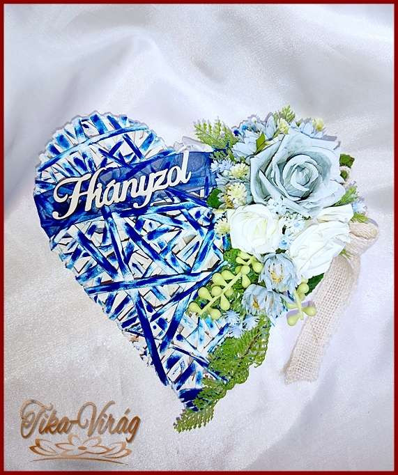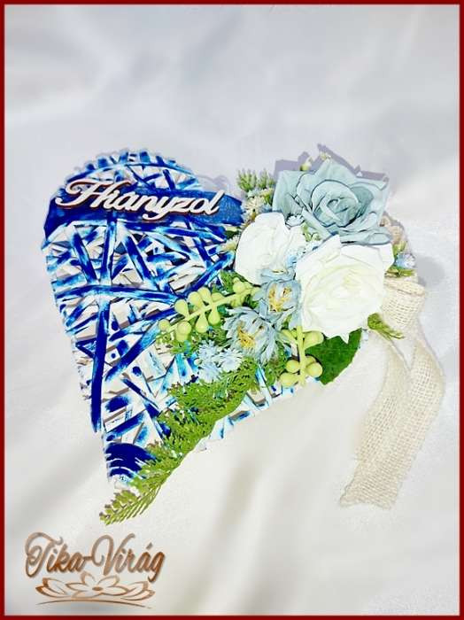 Rusztikus Szív Jég-kék és Fehér rózsa 171722. Méretei: 26x26x8cm Más színben is kérhető, előzetes egyeztetés, megbeszélés alapján! Keress ez ügyben!