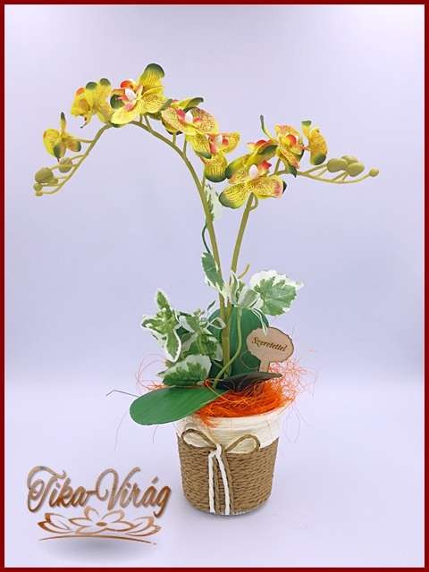 Sárgás-zöld-Orchidea kaspóban örök-Home-dekor 132629.