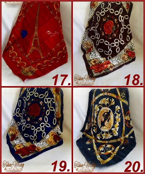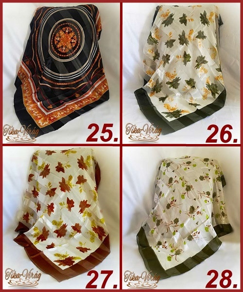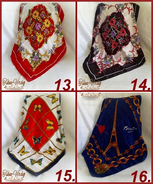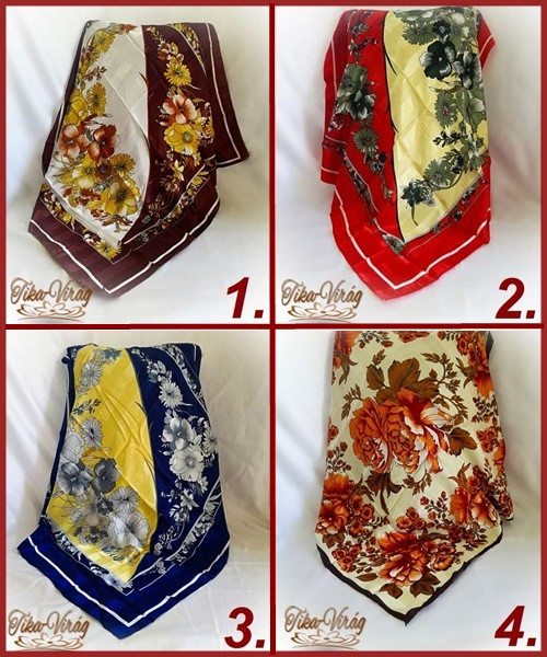 Selyemkendő 90x90cm-es mintás 164532. Fontos!! Rendeléskor a neked tetsző kendő képén található számot írd meg a megjegyzésbe, hogy tudjam milyen színű kendőt kérsz!