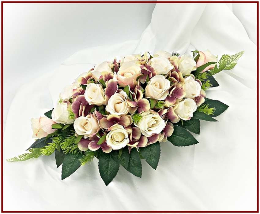 Sötét-mályvás-pasztell asztaldísz 230804. 21 szál rózsából Asztaldísz méretei: hossza: 50cm szélessége: 24cm magassága: 20cm Más színben is kérhető és szí-díszítésben is kapható! Mond el milyenre szeretnéd!