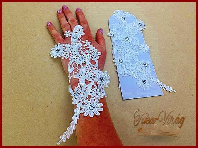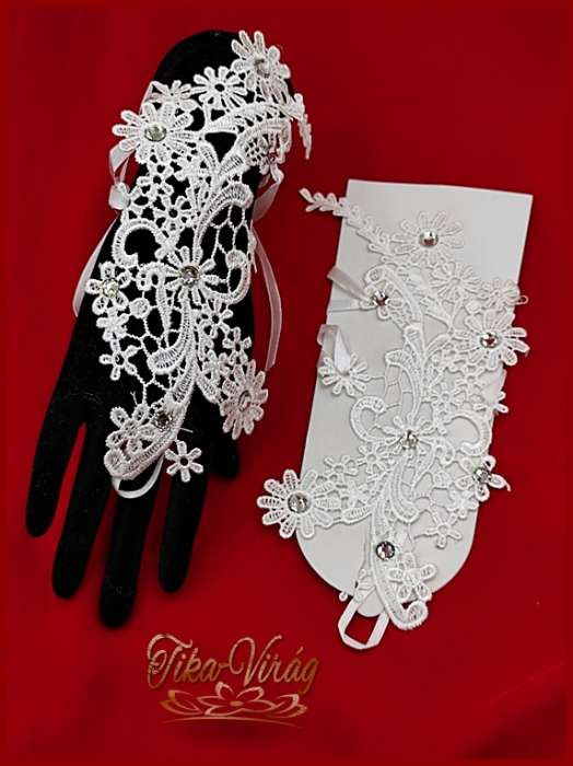 Stílusos rövid ujjas csipke kesztyű esküvőre 7357_4.
