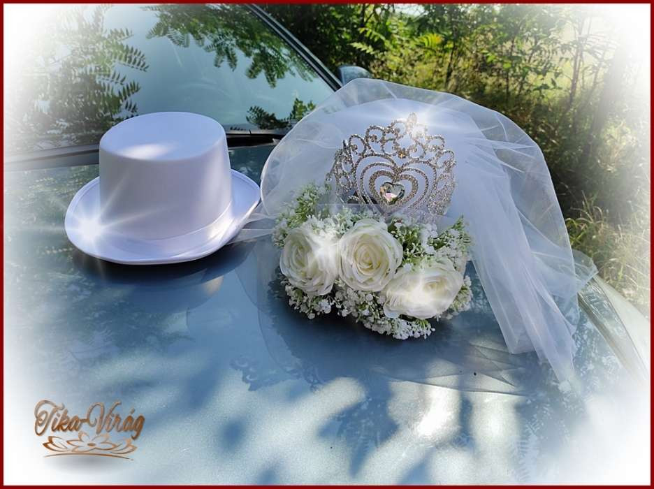 Koronával és Fehér Cilinderrel díszített autódísz 140339.