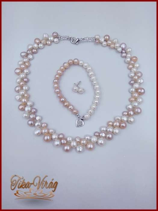 TENYÉSZTETT-GYÖNGY NYAKLÁNC SZETT BARACK-BÉZS