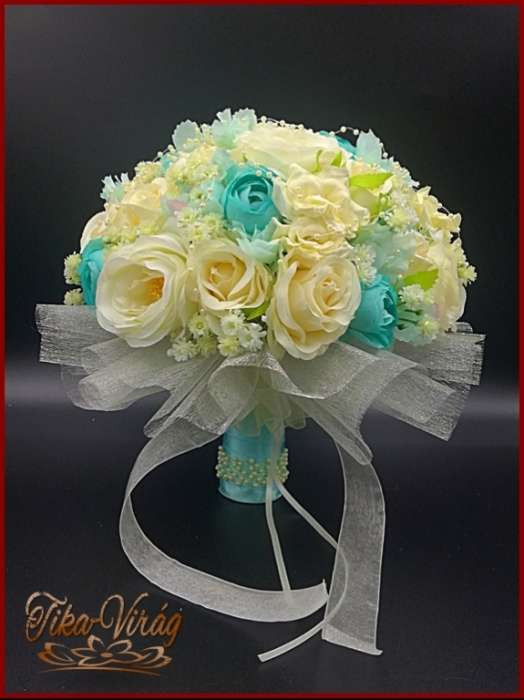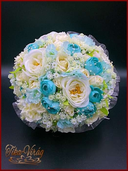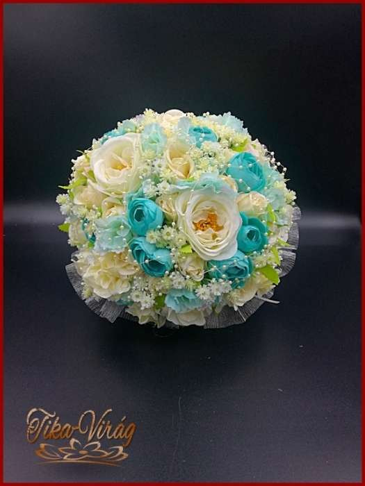 TÜRKIZ-ZÖLD BOGLÁRKÁS-AZÁLEÁS-EKRÜ RÓZSÁS CSOKOR Csokor mérete: Átmérője: 24cm Magassága: 25cm Más színdíszítéssel is kérhető! Mond el milyenre szeretnéd! :) Bármely alkalomra adható!
