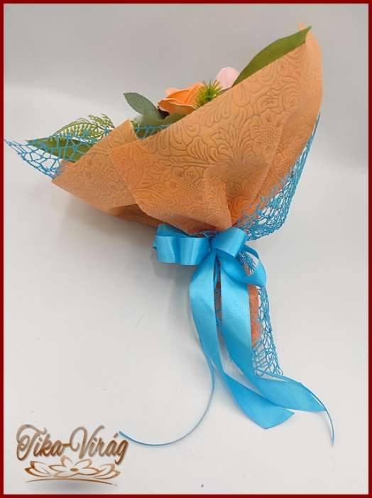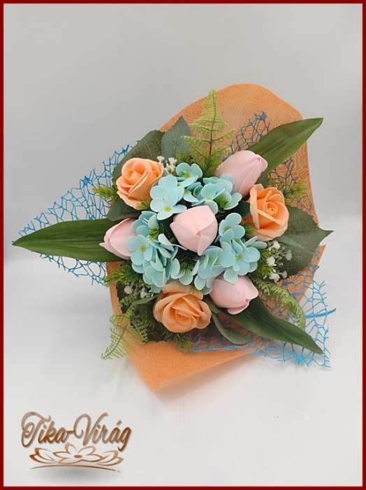 Tulipán-rózsa-hortenzia szappan-virágokból álló csokor 185406.