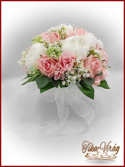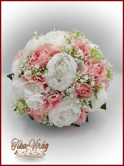 VINTAGE RÓZSASZÍN - FEHÉR PEÓNIÁS ÖRÖK-CSOKOR 162240. Csokor mérete: Átmérője: 26cm Magassága: 26cm Más színdíszítéssel is kérhető! Mond el milyenre szeretnéd! :) Bármely alkalomra adható!