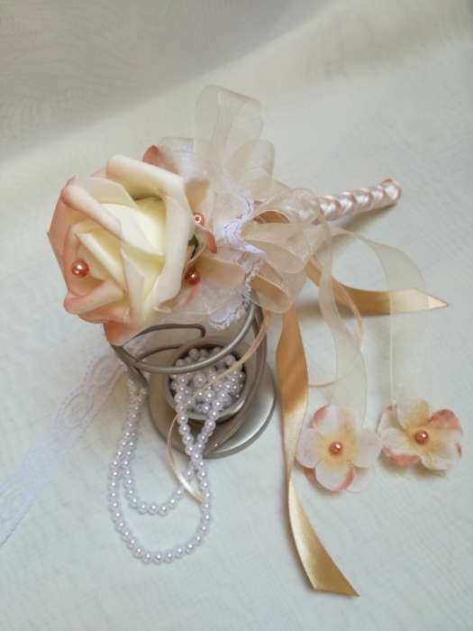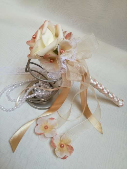 Vintage színű hamvas barack dobó, koszorúslány, vagy köszöntő örök-csokor 125348. Csokor hossza: 25cm átmérője: 10cm fej magassága: 7cm Más szín-összeállításban is kérhető!