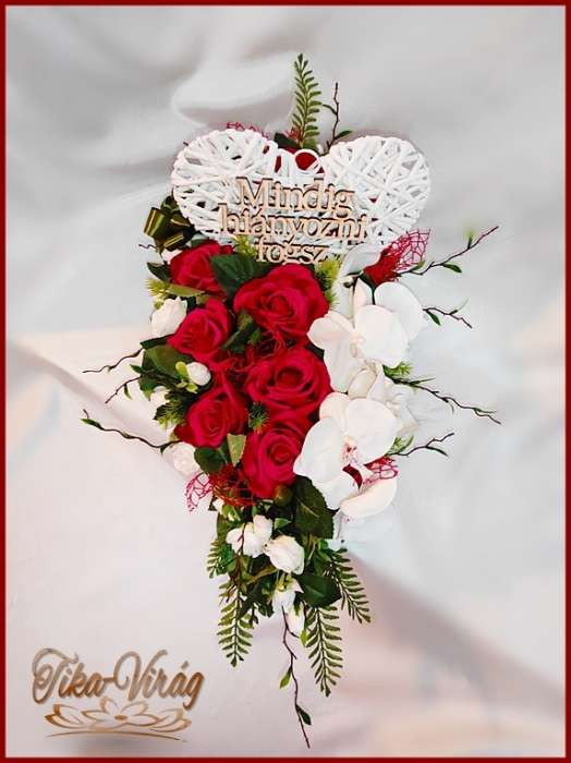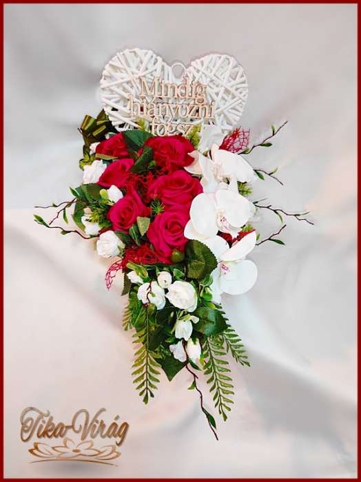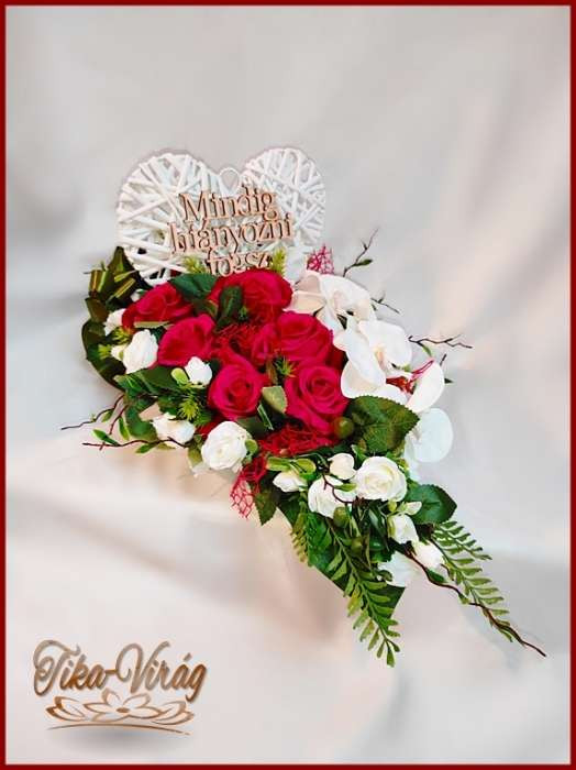 Virágtál Szívvel-Piros rózsákkal Fehér Orchideával 172055. Méretei: 65x30x30cm Más színben is kérhető, előzetes egyeztetés, megbeszélés alapján! Keress ez ügyben!