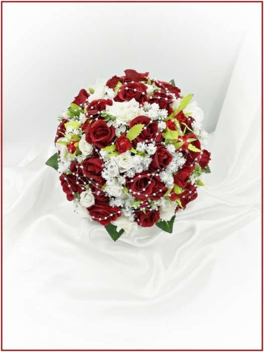 Vörös-rózsa örök-csokor fehér díszítéssel 121908.