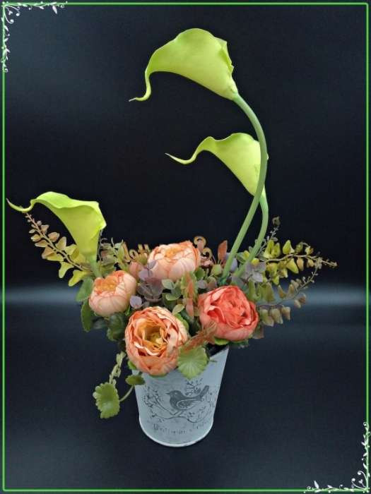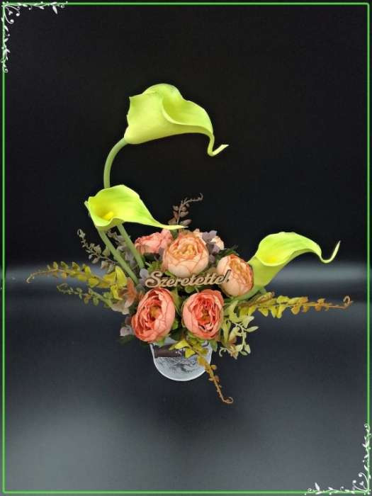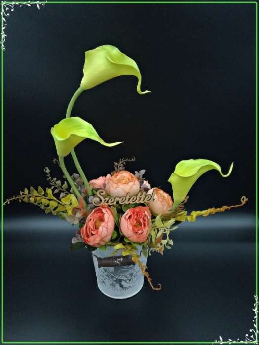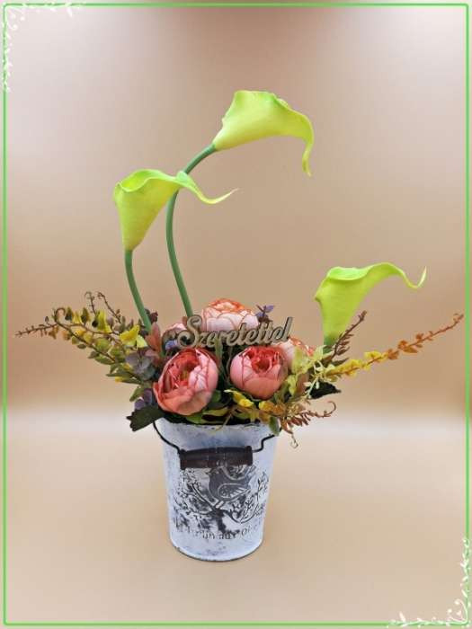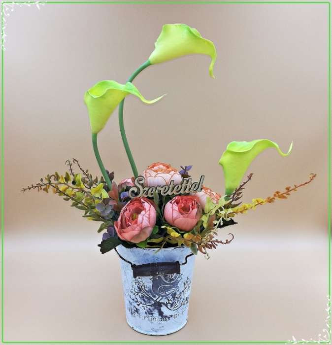 Zöld kálás-boglárkás vödör "Szeretettel"-táblácskával Home-dekor 200953.