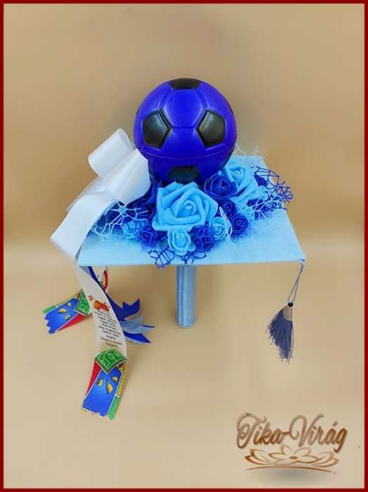 A virágok finoman össze vannak kötve egy nagy foci labdával díszített ballagószalaggal, így tökéletesen kifejezheted a sport iránti szenvedélyt és az ünnepi hangulatot egyszerre. Ez a csokor nemcsak gyönyörű látványt nyújt, hanem emlékezetes pillanatokat is teremt, amelyek örökké megmaradnak.