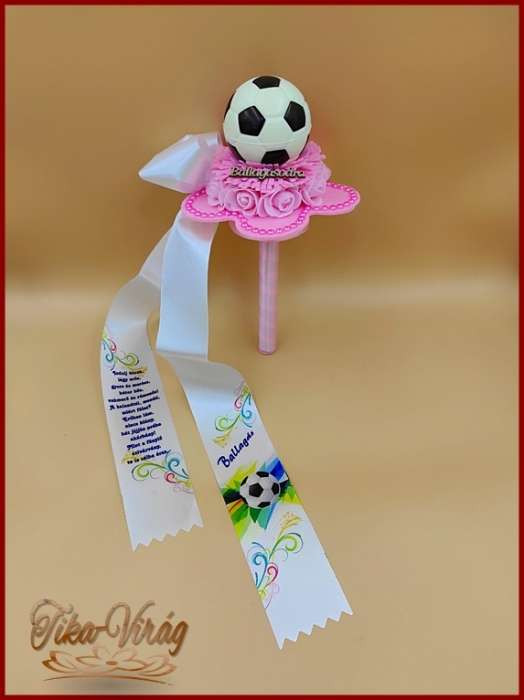 Ovis ballagási örök csokor lányoknak – rózsaszín focilabdás egyedi ajándék