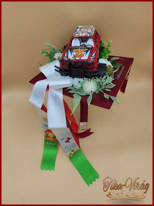 Ünnepeld meg kisfiad, unokád, keresztfiad ballagását egyedi és stílusos módon a Terepjárós ovis ballagó örök-csokorral! Ez a különleges csokor tökéletes választás a kis felfedezőknek és kalandoroknak, akik szeretik az izgalmakat és a természetet. A virágokat egy terepjáróval díszített ballagószalaggal kötöttem össze, így egyedivé téve az ünnepi megjelenést. Ez a csokor nemcsak szép dekoráció, hanem emlékezetes ajándék is, amely örökre megőrzi az ünnep pillanatait. Legyen ez a Terepjárós ovis ballagó örök-csokor az ideális választás az ünnepre!