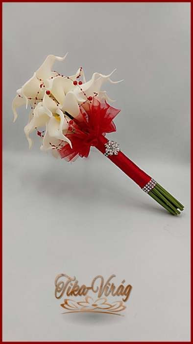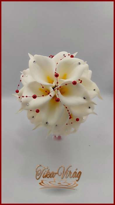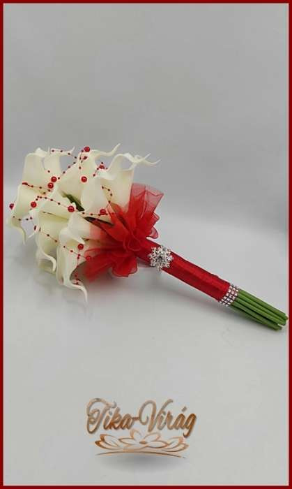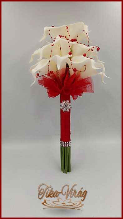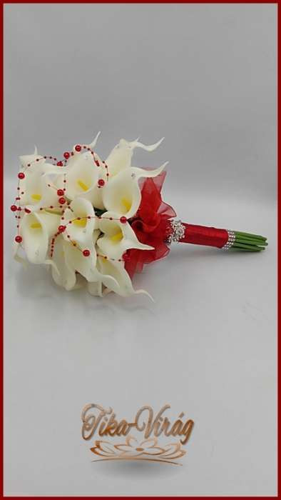 24 virágos Fehér Kála örök-csokor piros díszítéssel 093321.