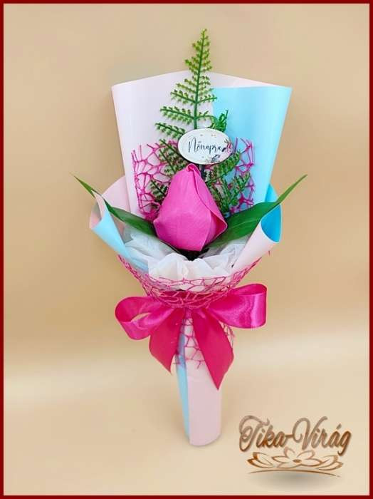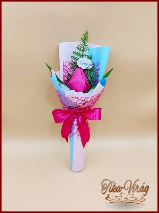 Pink színű szappan-tulipán csokor Nőnapi táblával 094908.