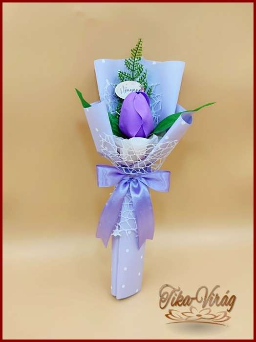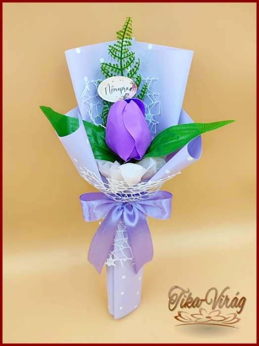 Lila színű szappan-tulipán csokor Nőnapi táblával 094954.